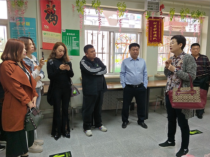 宏伟区民政局长包洪英向外市介绍幸福爸妈养老服务经验