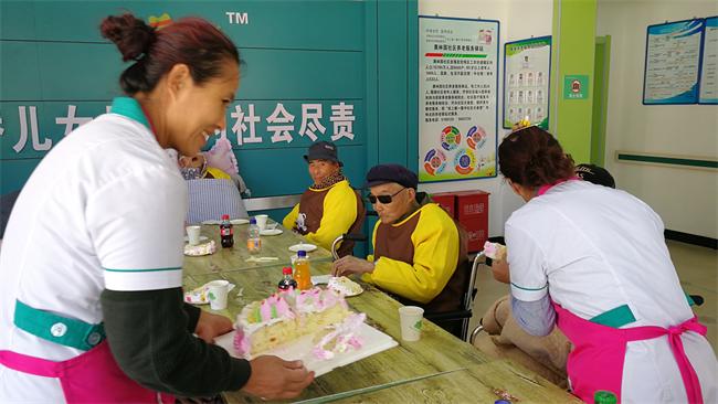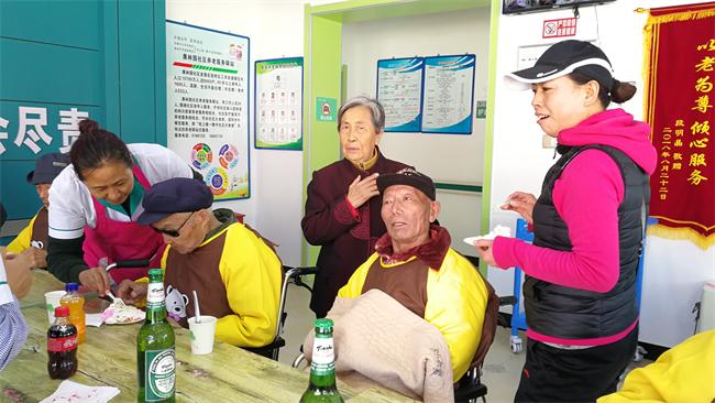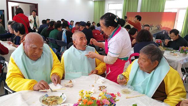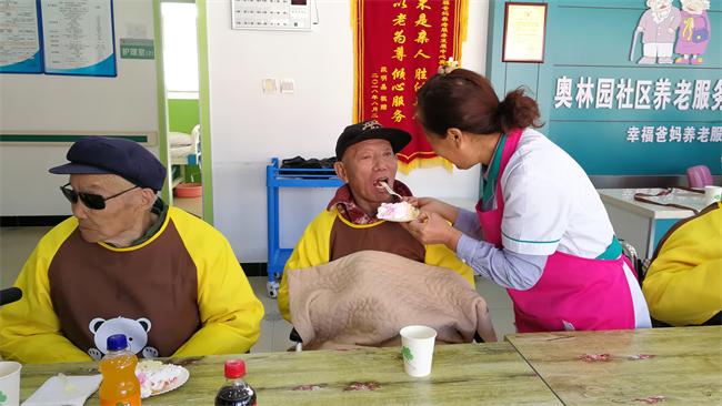 2018年10月16、17两日幸福爸妈养老发展中心奥林园养老院与社区共同举办了“喜迎新时代 欢乐度重阳”祝寿宴,养老院的老人过了一个喜庆祥和的别开生面的重阳节。可口的菜肴和热腾腾的饺子和精彩的演出节目,幸福爸妈董事长为养老院的老人送上了温馨的祝福,老人们面带笑容,心花怒放,感受到社会的温暖。