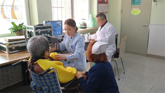 2018.10.23日中奥医院的医护人员为幸福爸妈养老服务发展中心的美林园养老驿站的老人进行体检,并嘱咐、指导养老驿站的老人、驿站人员的各方面注意事项。