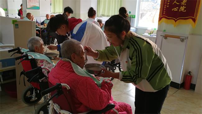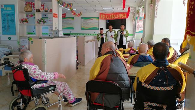 2018.10.24日沈阳工业大学的学生志愿者一行40多人,来到幸福爸妈养老发展中心长征街道养老驿站,为老人演出节目,同学们带了水果、饮料等慰问品,与老人亲切的沟通,给老人梳头、剪指甲、帮老人活动,参与老人进餐,协助护理员喂饭等,大学生的志愿者活动为老人带来了欢乐,送来了温暖,养老院里欢声笑语一片,老人非常开心。