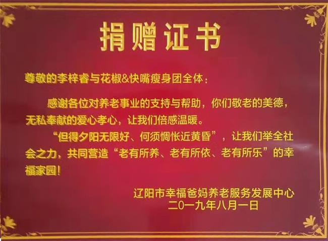 李梓睿与花椒&快嘴******团全体捐赠高级夏凉被100套