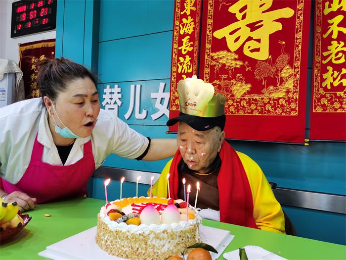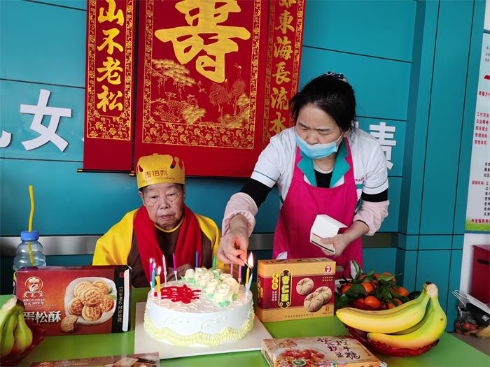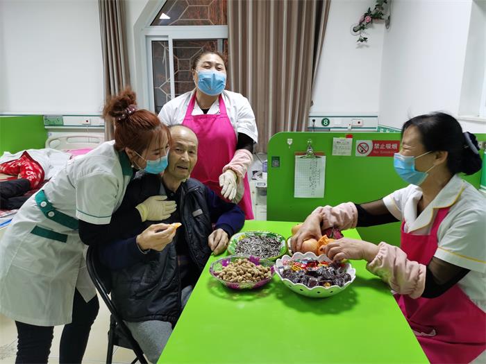 春节是中华民族的传统节日,老人都希望在春节期间儿孙绕膝团团圆圆。往年春节有的老人儿女接回家过年,不能回家的老人儿女每天都带着孩子来看望。封闭式管理后既不能回家也没有子女看望,很多老人产生了急躁不安的情绪。面对老人的情绪,院长肖永菊女士与工作人员把老人当成自己的父母,耐心的向老人宣传新型冠状病毒的危害性,耐心周到的服务,并与老人子女视频,让老人面对面的与子女说话,让老人感到在家与子女过年和养老院与工作人员一起过年都一样的快乐。阴历二月初二是张振文爷爷和段素坤奶奶84岁的生日,肖院长买了蛋糕、水果,工作人员当儿女分别为两位老人过生日,一起唱生日歌,祝老人生日快乐。两位老人感动流下了热泪。为老人过生日的视频发到养老院微信朋友圈,受到老人子女的好评。