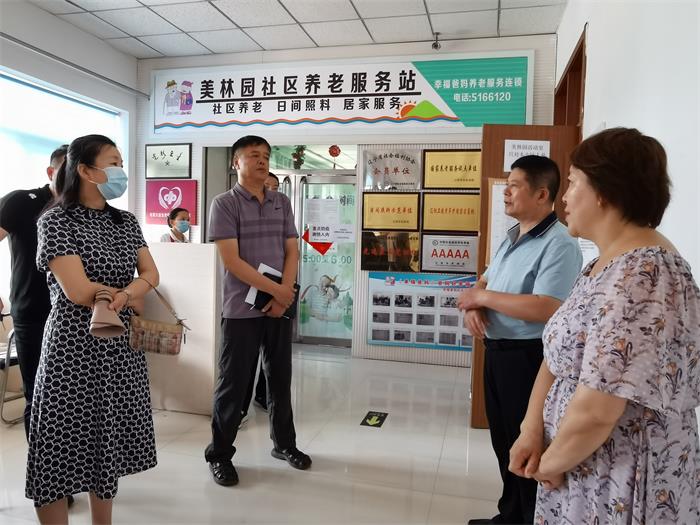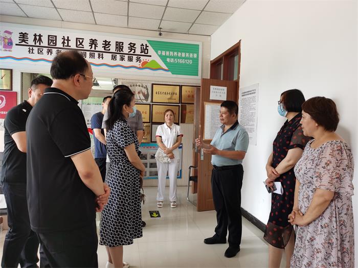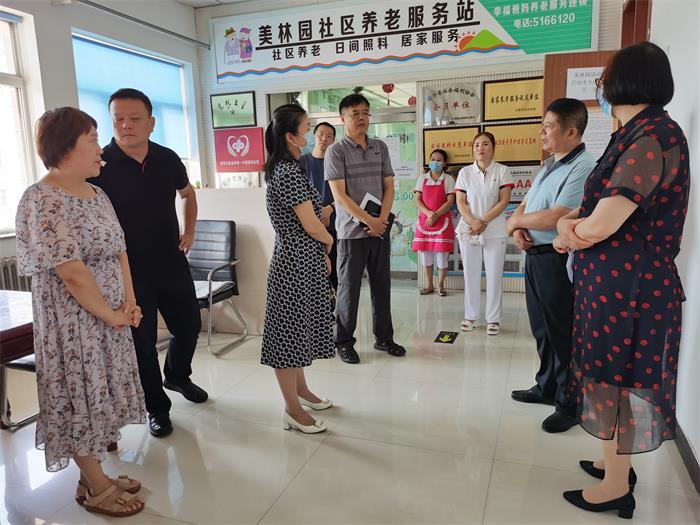 辽阳市政协调研组一行9人在宏伟区副区长赵震和区住建局、区民政局、区城建服务中心部门领导的陪同下,对幸福爸妈养老服务发展中心美林园社区养老站里老人日间照料工作进行调研,听取了董事长董守仁介绍养老服务驿站相关情况,进一步了解当前社区养老服务工作。