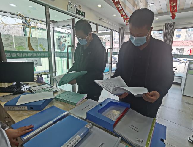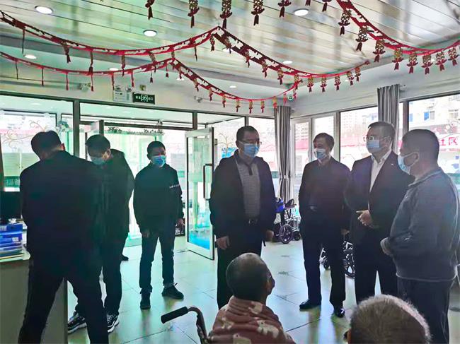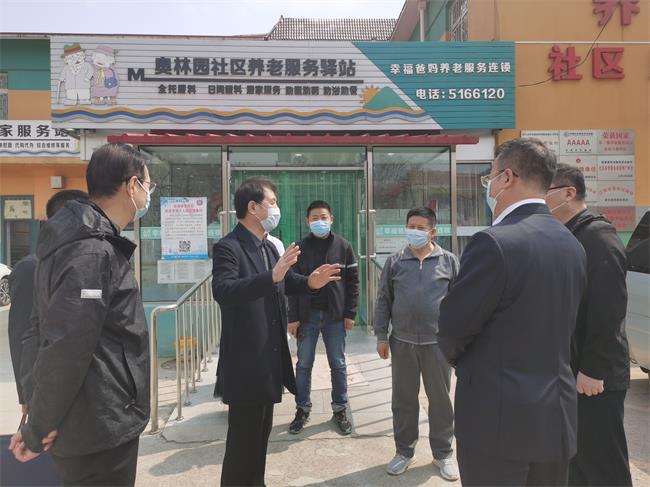 2021.4.15辽宁省委巡视督导组, 在市民政局局长吴险峰、副局长杨斌、民政局办公室主任王宝岭、社会福利科长史丹勇等领导的陪同下,来到幸福爸妈奥林园社区养老服务驿站进行巡视督导工作,详细了解幸福爸妈居家社区养老工作,对社区养服务老驿站开展的"双上楼一集中社区大食堂"工作给予高度赞偿,有针对性的检查厨房安全、老人护理安全、护理员自身工作防护安全、防火安全和照料取费、护理流程及卫生环境等进行检查;对安全管理和运营模式给予很高的评价,受到市民政局领导的好评。