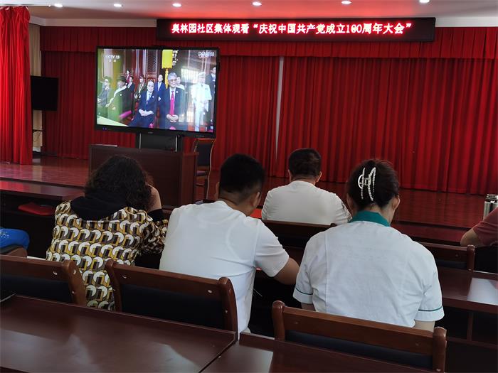 2021年7月1日7.50分幸福爸妈养老服务发展中心党支部组织全体党员与奥林园社区党员一起观看《庆祝中国共产党成立100周年大会在天安门广场隆重举行》直播视频,通过观看空军的飞行庆祝表演、升国旗仪式、礼炮鸣响、唱国歌、共青团员和少先队员代表集体致献词,充分展示了庆祝百年建党的辉煌与我们同唱国歌心潮澎湃,豪情满怀。全体党员认真凝听了中共中央总书记、国家主席、中央军委主席习近平发表重要讲话,1921-2021,百年成就辉煌、百年岁月峥嵘、百年波澜壮阔。