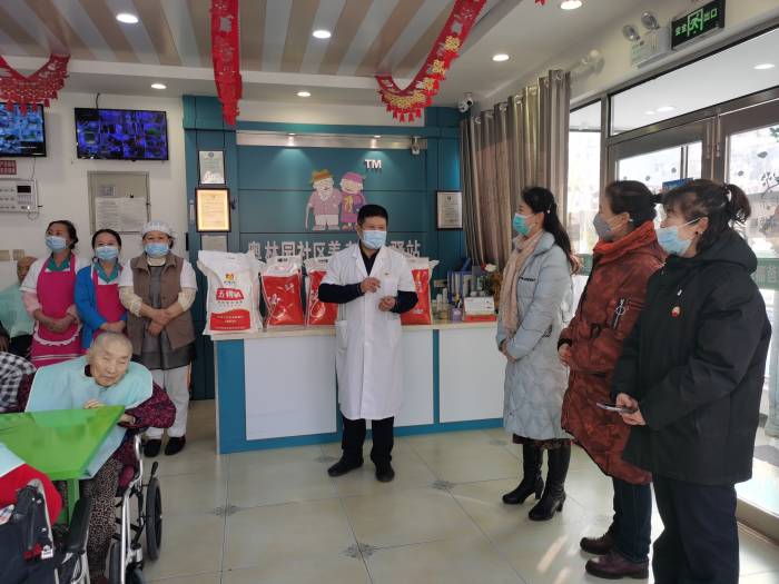 2022.1.24宏伟区太极拳协会主席庄硕和协会的领导来到幸福爸妈奥林园社区养老服务驿站,她们带来了太极拳协会的拳友们自发的捐款为老人购买了米、面、油、奶等食品,慰问老人,并为老人送来了节日的祝福,老人们激动着,员工们感动着。通过董事长、院长介绍和参观老人们的生活环境,太极拳协会的领导深有感触,养老院为老人提供了******的生活环境,为地区养老服务带来方便,是一项爱心的伟大工程,纷纷赞叹不已。