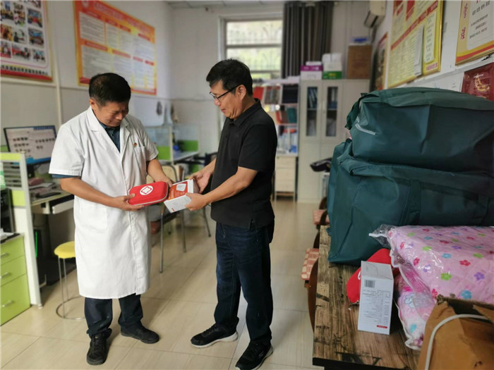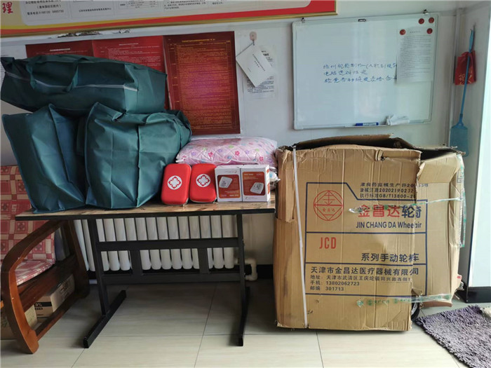宏伟区红十字会领导和工作人员来到幸福爸妈奥林园社区养老服务驿站为老人捐赠急救包、夏凉被、轮椅等物品。
