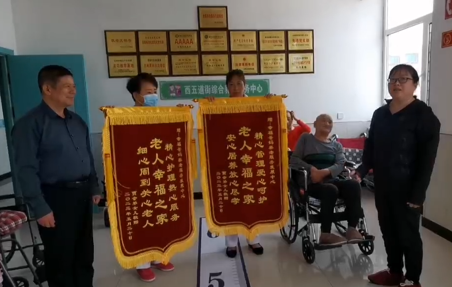 2023.5.20幸福爸妈养老服务西五道街分支机构,老人家属为感谢养老护理员周到服务,送锦旗表达感谢。