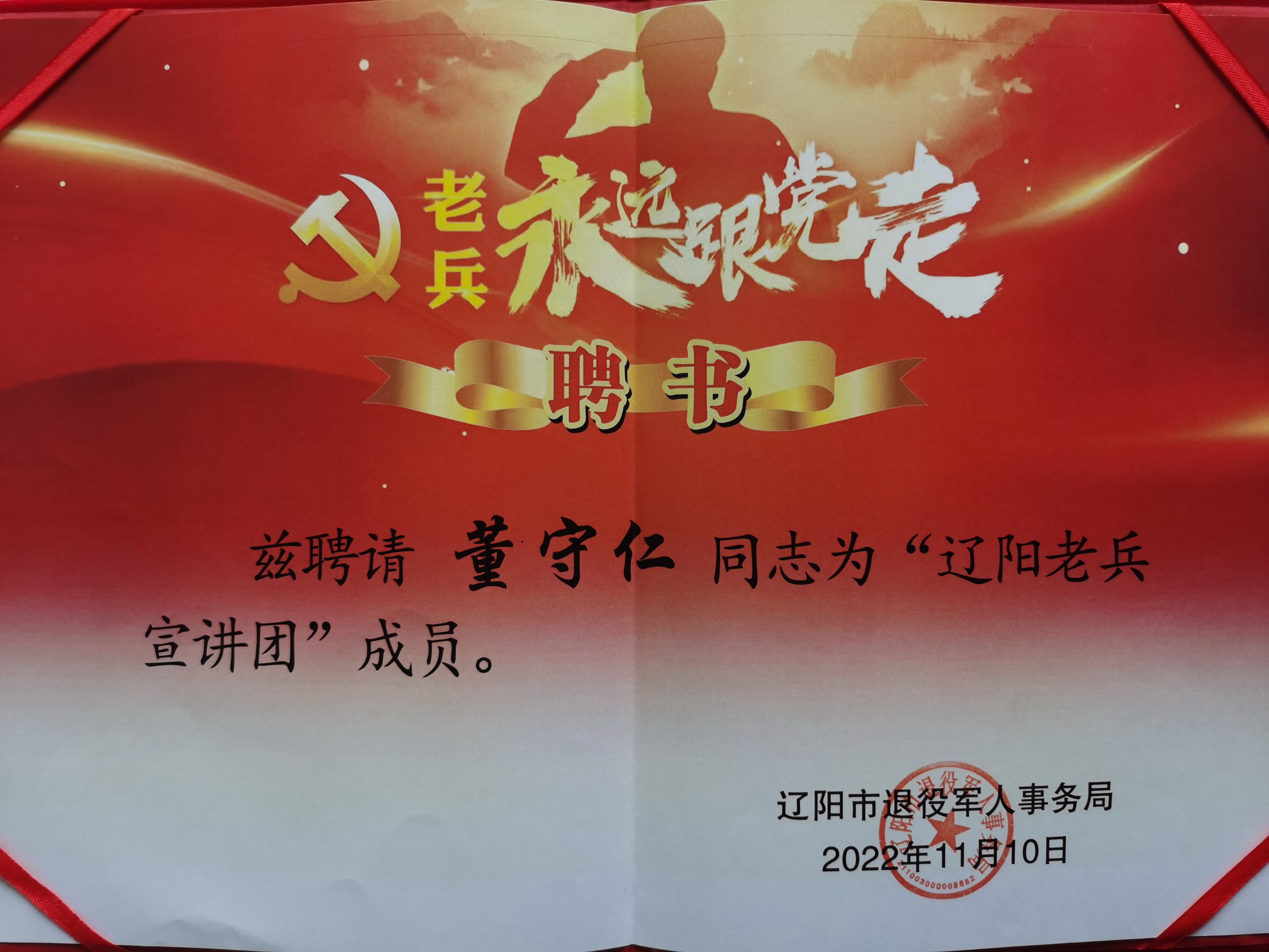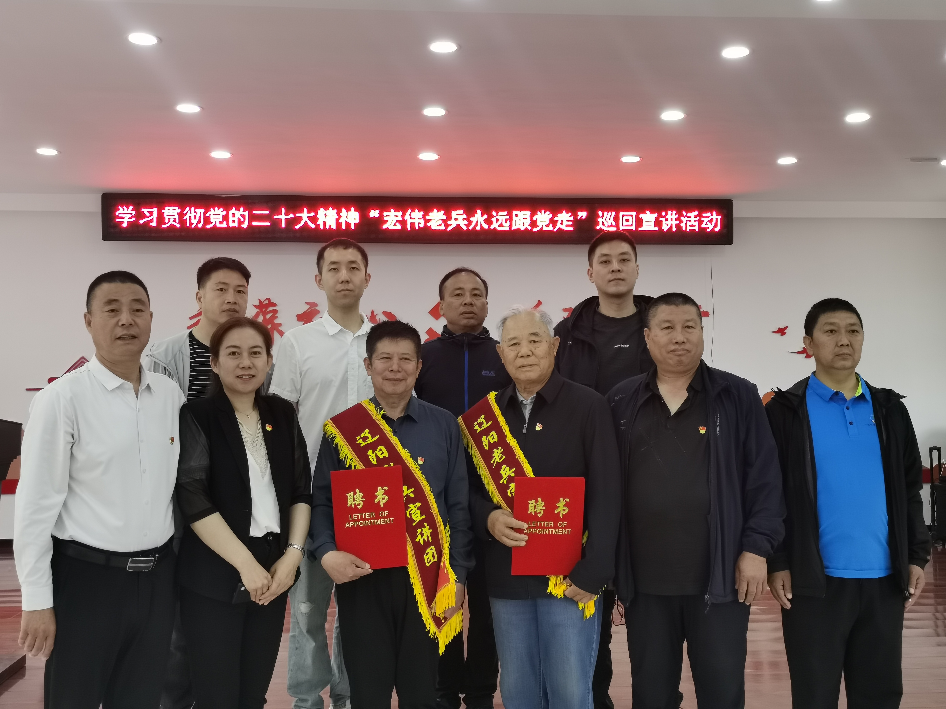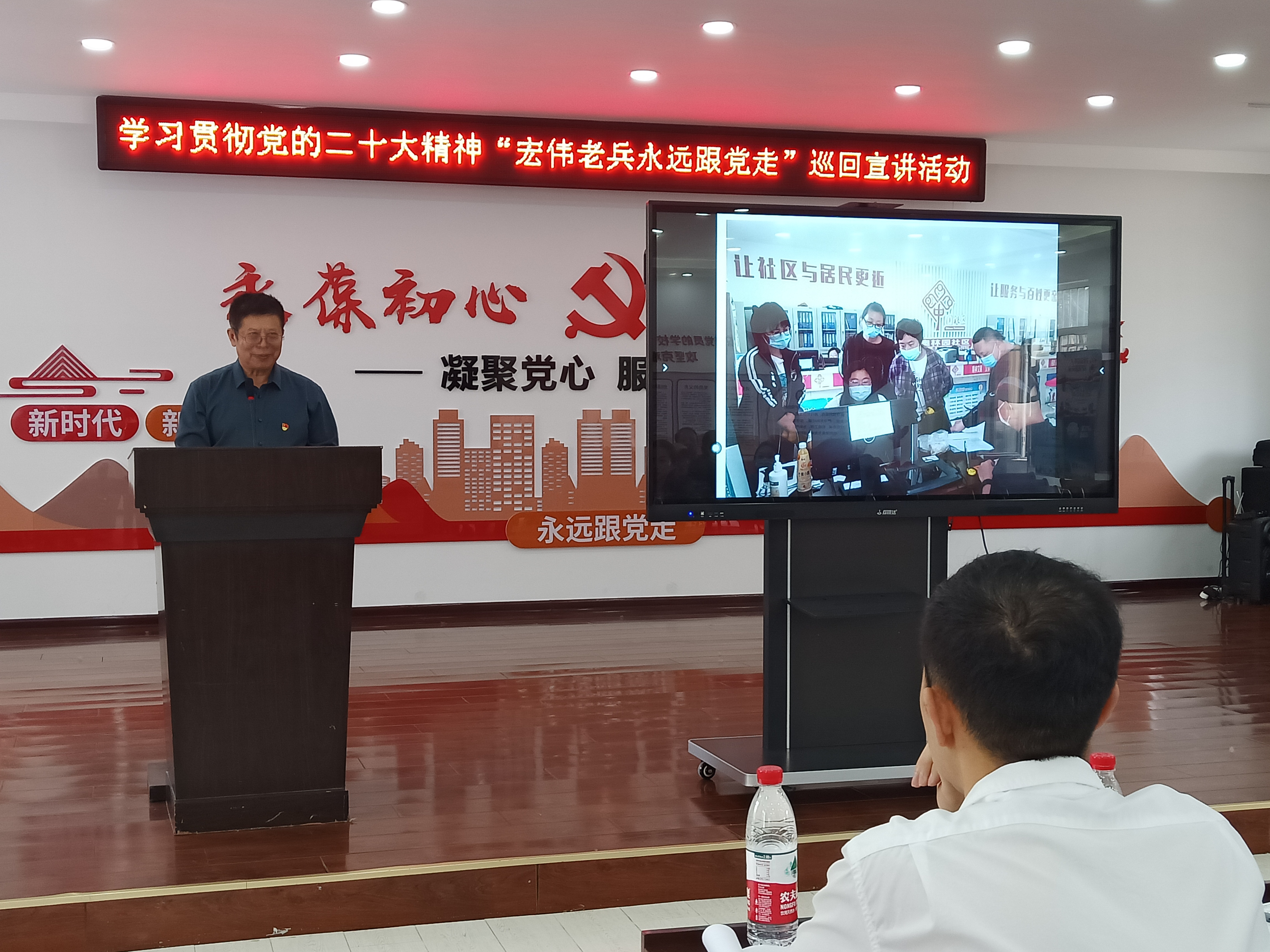 2023.5.25学习贯彻党的二十大精神“宏伟老兵永远跟党走”巡回宣讲活动,幸福爸妈理事长董守仁聘为讲师团讲师,并在大会进行宣讲。