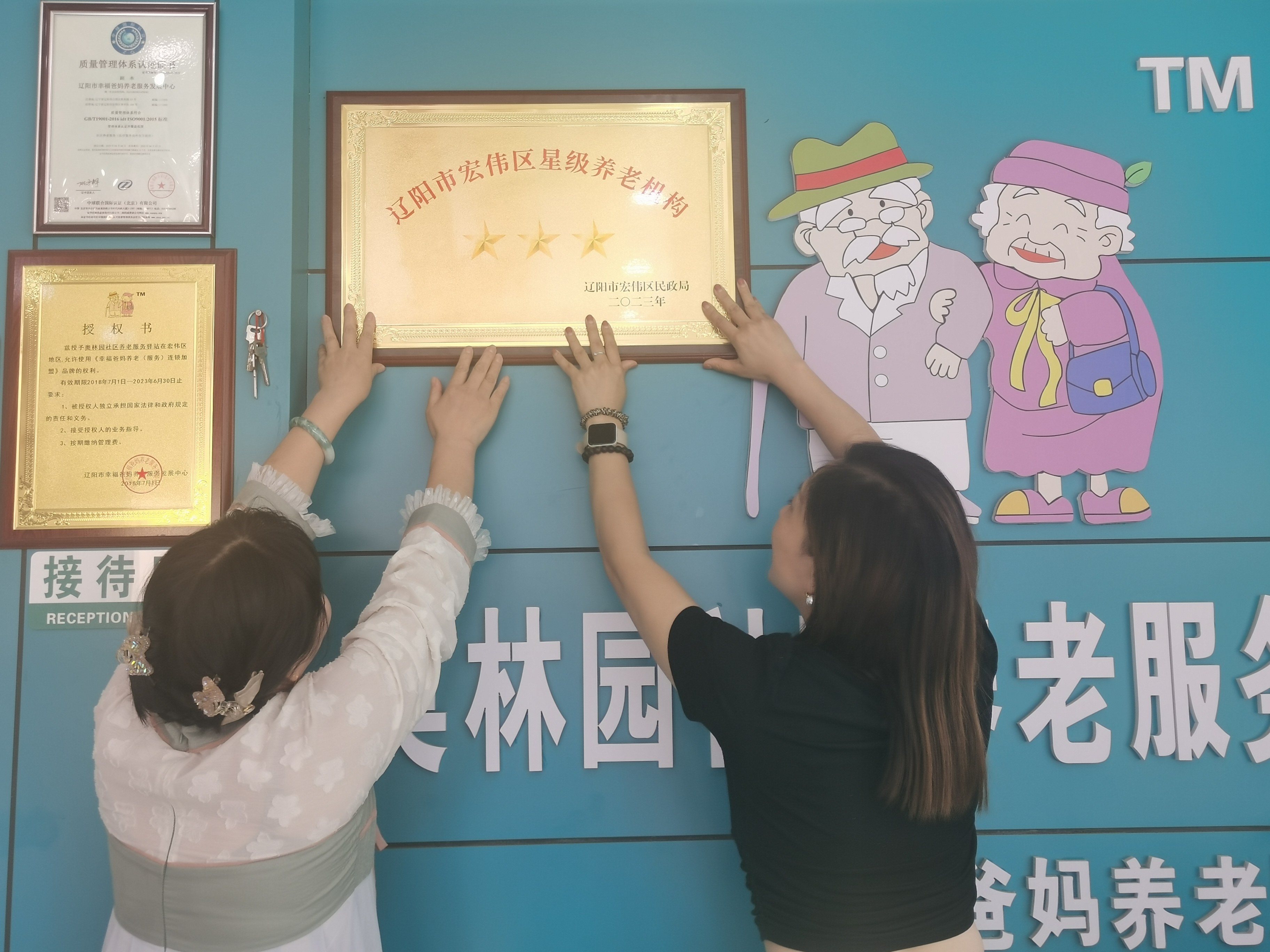 幸福爸妈养老机构分别在宏伟区和白塔区获评三星级养老服务机构。宏伟区民政局领导到幸福爸妈服务机构挂牌接匾。
