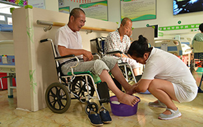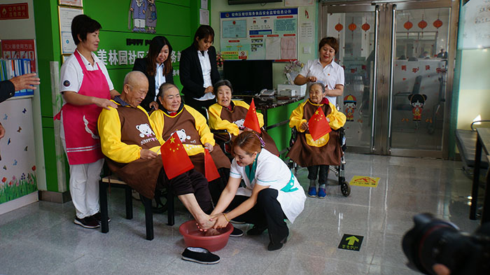 5、养老院每天为所有的老人洗脚、泡脚,尽量让失能老人享受晚年的幸福。