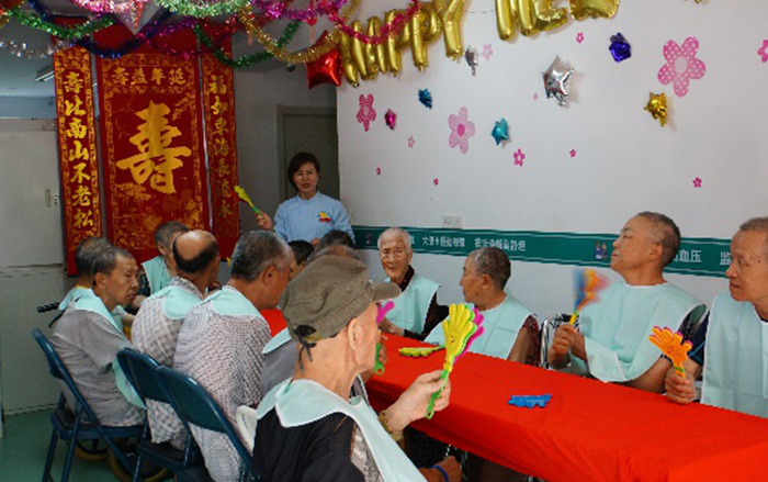 养老院里的生日/护理员为老人过生日