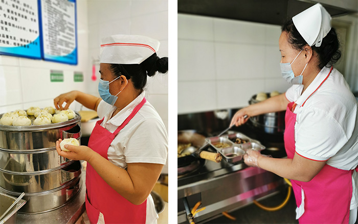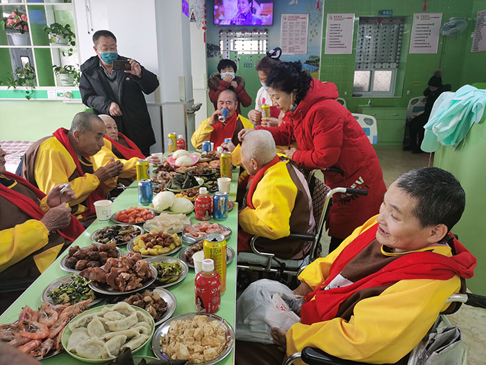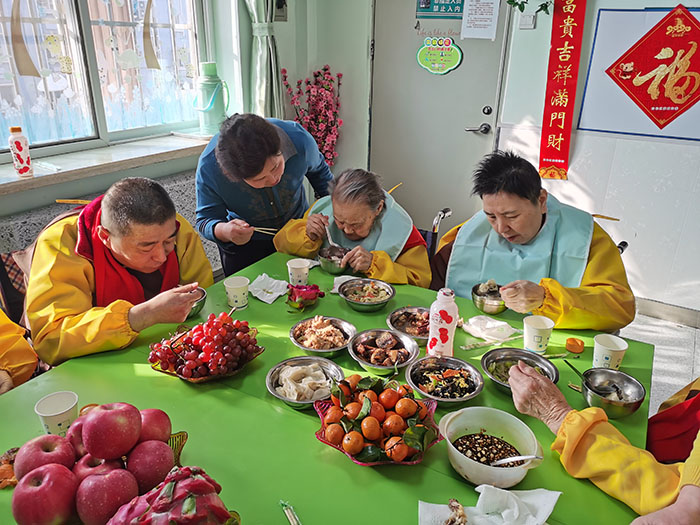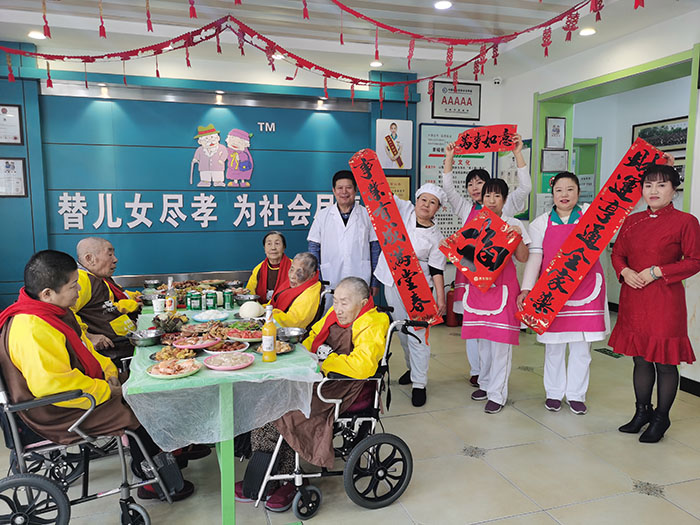 8、幸福爸妈养老服务各个驿站里是统一食谱、统一管理,按照老人的饮食结构特点进行烹调,花样翻新,顿顿不重样,剩饭剩菜不准给老人食用,所有护理员都在为老人进餐忙前忙后,保证老人吃饱、吃好,并有节日的祝福。